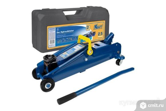 Подкатной гидравлический домкрат KRAFT 2.5 т, кейс KT 820003 предназначен для плавного поднятия автотранспорта на высоту до 385 мм.