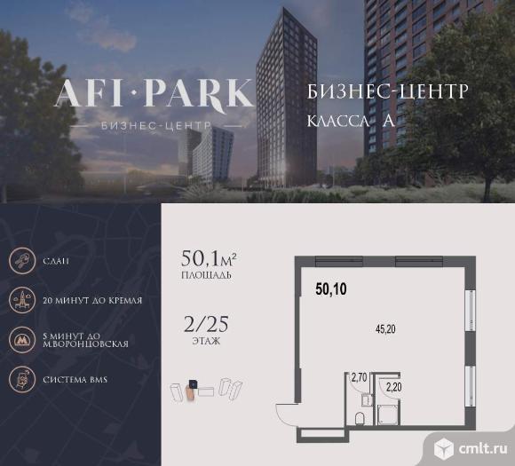 Продается просторное коммерческое помещение общей площадью 50,1 на 2 этаже в готовом бизнес-центре AFI Park. Строительство комплекса завершено.