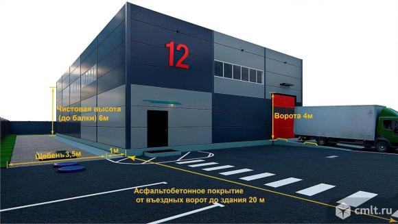 Площадь здания 540 м2. Площадь участка: 19,61 сотки (земля в собственности) . Линейные размеры здания: 18x30 м. Трехслойные сендвич-панели 1-го класса толщиной 120мм. Ж/б фундамент и каркас металлический. Утепленная цокольная балка. Нагрузки по нормативам 3го снегового района. Загрузка: ворота с доступом на «нулевом» уровне - удобно для заезда любой техники внутрь. Электричество 16 КВт. Газ - среднего давления по границе участка. Сталефибробетонный ровный пол, нагрузка не менее 3,5 тонн/кв. м (подходит для тяжелого оборудования и стеллажей) . Шаг колонн 6 метров по периметру здания. Внутри здания отсутствуют колонны или перегородки. 6 метров чистовая высота потолка (от пола до балки - максимум полезной площади) . Плоская неэксплуатируемая кровля с мембраной Thermofol U15 TM Bauder (пр-во Германия) или аналог. [#8136470#]