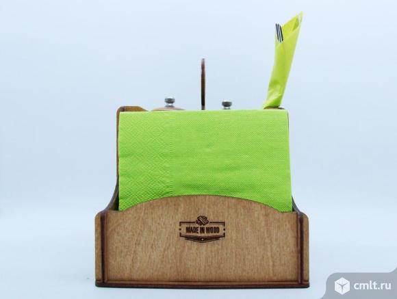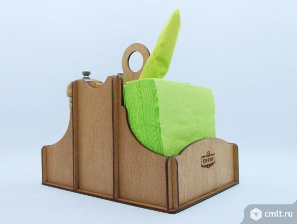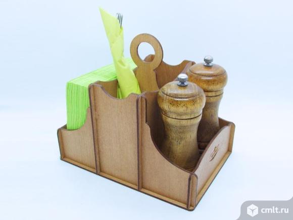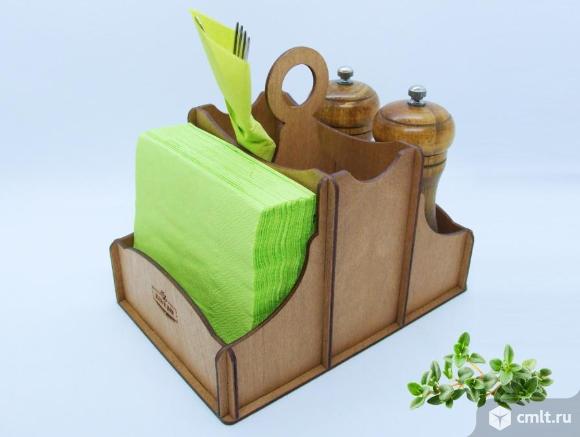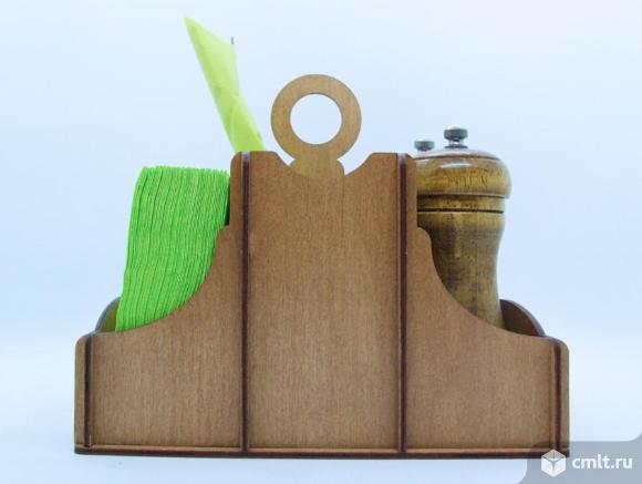 Функциональная и элегантная настольная подставка 3 в 1: салфетница, отделение для столовых приборов и отсек для специй.