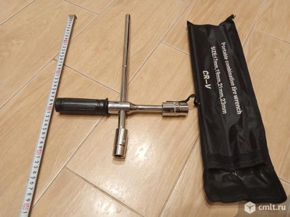 Новый,в сумке-чехле Отправлю в регионы всеми видами отправок На 1-м фото,взятом из интернет,пример как выглядит процесс откручивания именно таким ключем Обязательно посмотрите прикреплённое видео то же взятое из интернет для представления удобства откручивания колёсных болтов или гаек Помните с такими ключами ни в коем случае нельзя применять ТРУБУ-всегда без исключений рвет головку-любую.Откручивание только руками Материал ключа хромованадиевая сталь (CrV)как заявляет производитель 5 предметов:головки на 17-19 и на 21-23 мм,вороток,не полый пруток и сумка чехол Длина самого длинного рычага 400 мм Длина второго рычага 270 мм Рукоятка обеспечивает удобный хват и не проскальзывает в руке Приобретался для того,что бы возить с собой в дороге,так как автомобиль минивен,а в шиномонтажах болты затягивают пистолетами и в дороге бывает проблематично открутить болты.Обычно водители в дороге впопыхах слизывают родным коротким ключем головки болтов которые потом не подлежат обратному прикручиванию и нужно будет заказывать новые болты,ато и высверливать Таким ключем удобно откручивать плохо откручиваемые колёсные болты Вес 1.68 кг Посмотреть можно в любое время в районе пл.Ленина,ресторана Токио 25.02.2026 06:05